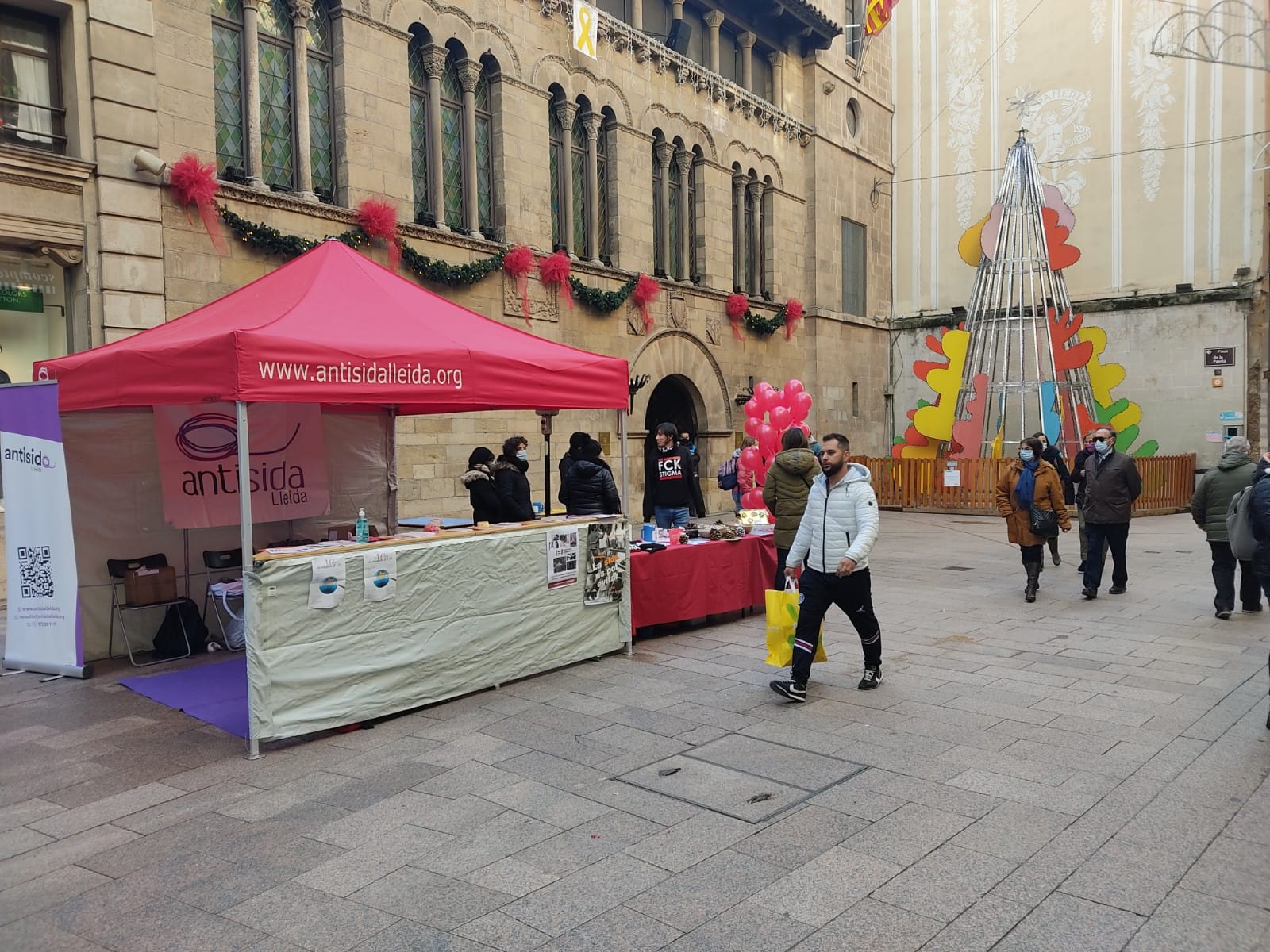 Durant tot el dia, la Fundació Antisida de Lleida estarà ubicada a la plaça Paeria de Lleida on tindran llocs diferents activitats infantils i una actuació musical a les 17.30 hores. Els diners recollits avui amb motiu del Dia Mundial de la Sida permetran oferir ajuts de primera necessitat a població en risc d’exclusió social de la demarcació de Lleida.